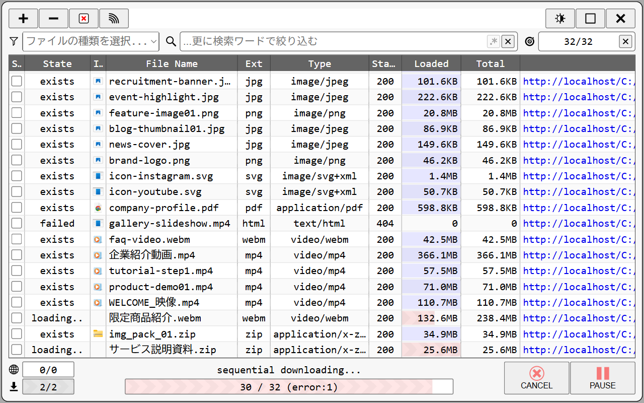 検出したメディアファイルは、一括でダウンロードする事ができます。